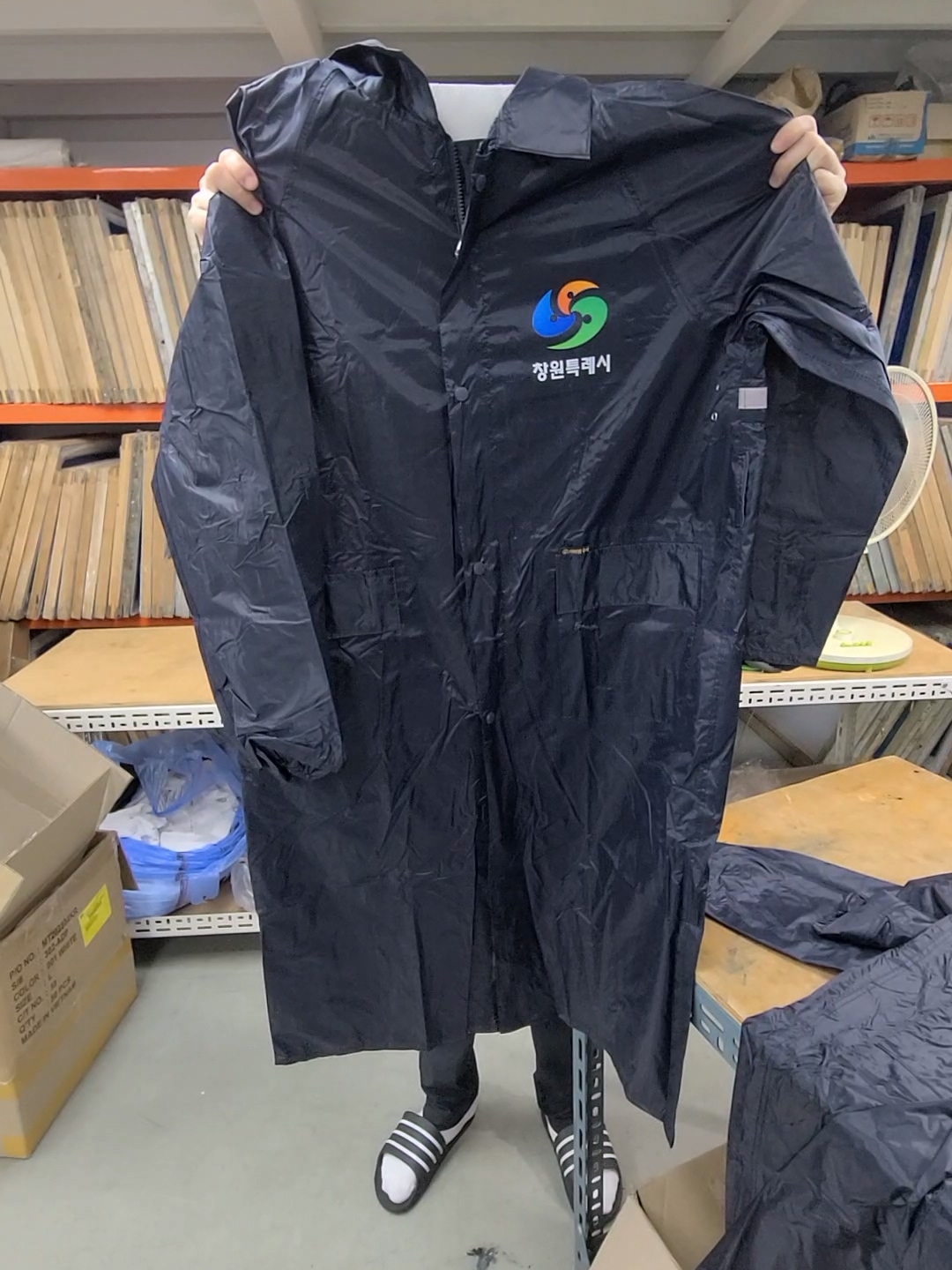 레인코트형 우비에 창원특례시 로고를 인쇄해드렸습니다.